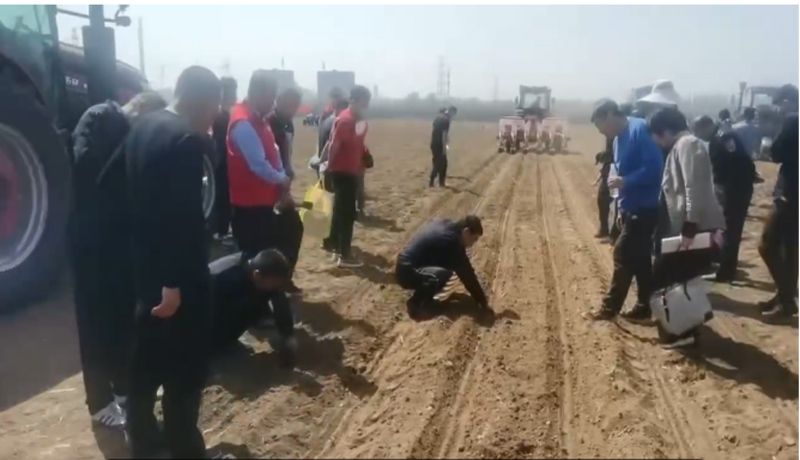 2024年4月12日,我廠生產(chǎn)的2BMYFS-6型氣吸式高性能玉米單粒精量播種機參加了濟南市農(nóng)業(yè)機械技術推廣站組織的在章丘龍山鎮(zhèn)召開的“濟南市高性能精播精作機械作業(yè)演示現(xiàn)場會暨農(nóng)機地頭展”。企業(yè)李文華銷售經(jīng)理介紹了產(chǎn)品機構、性能特點和使用注意事項,并進行了現(xiàn)場演示。2BMYFS-6型氣吸式高性能玉米單粒精量播種機采用進口風機和排種器,風力穩(wěn)定可靠,確保不漏種;進口排種器采用兩面清種,確保單粒排種;并且產(chǎn)品已獲得農(nóng)業(yè)機械鑒定證書,購買可享受國家農(nóng)機購置補貼。